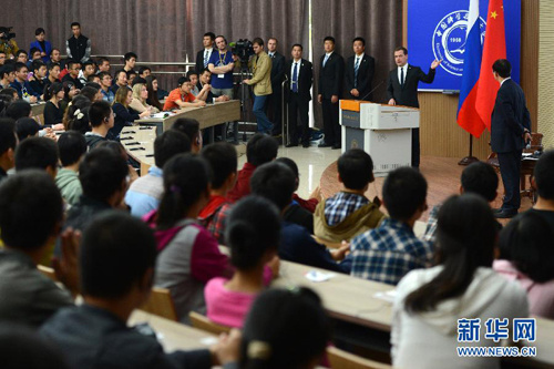 10月23日,梅德韦杰夫在中国科学技术大学发表演讲。当日,俄罗斯总理梅德韦杰夫访问安徽。 新华社记者 张端 摄