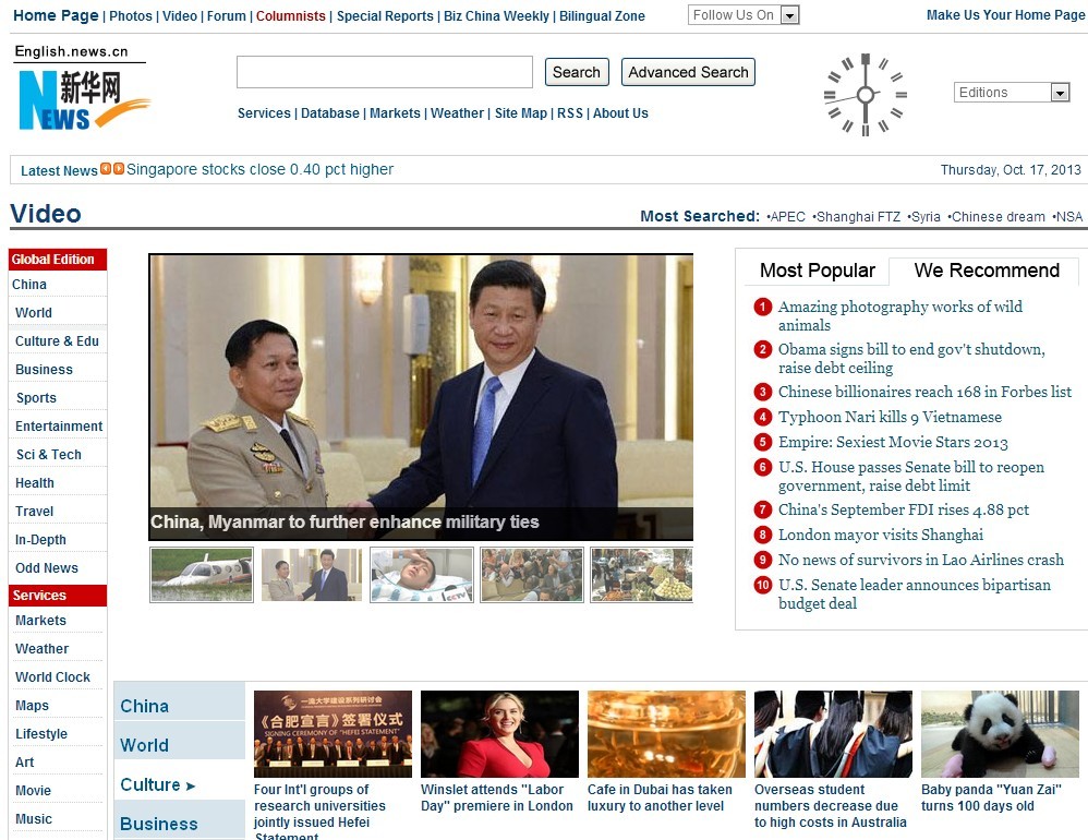 新华网英文频道 http://news.xinhuanet.com/english/video/2013-10/17/c_132806659.htm