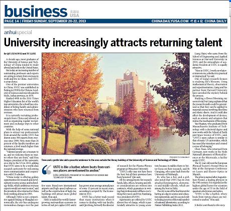 Liang Haiyi, who came from the School of Engineering and Applied Sciences at Harvard University in 2010, said the atmosphere of academic freedom at USTC is equally attractive.