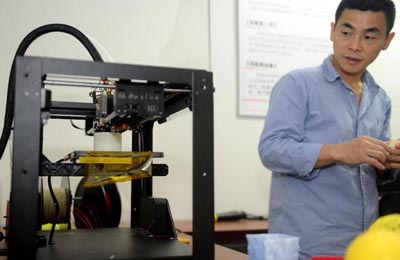 9月24日,3D打印机按照研究组设计的新方法打印物体。近日,中国科学技术大学数学科学学院国家数学与交叉科学中心(合肥)图形与几何计算实验室的研究组在三维打印(快速制造)领域成功实现了“经济节约型”三维打印的结构优化设计与验证。三维打印技术是以三维模型几何设计为基础的先进制造工艺,近年来逐渐应用于工业制造、医学工程、原型验证、个性化定制等领域。由于原材料和工作原理的限制,目前的三维打印技术存在原材料昂贵、机械寿命短、加工速度慢等缺点。该研究小组提出了一种轻质结构的多目标优化方案,能有效地降低打印材料成本,并使打印物体满足所要求的物理强度,受力稳定性,自平衡性及可打印性。实验结果表明新方法比实心打印能节省约70%的材料并缩短制造时间,比已有的方法都更具成本效益。新华社记者 刘军喜 摄