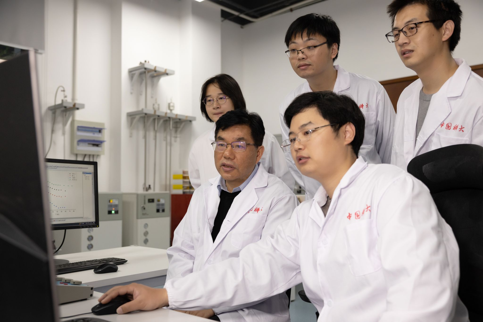 化学与材料科学学院徐铜文教授(左)团队在实验室进行离子膜研究。代蕊 摄
