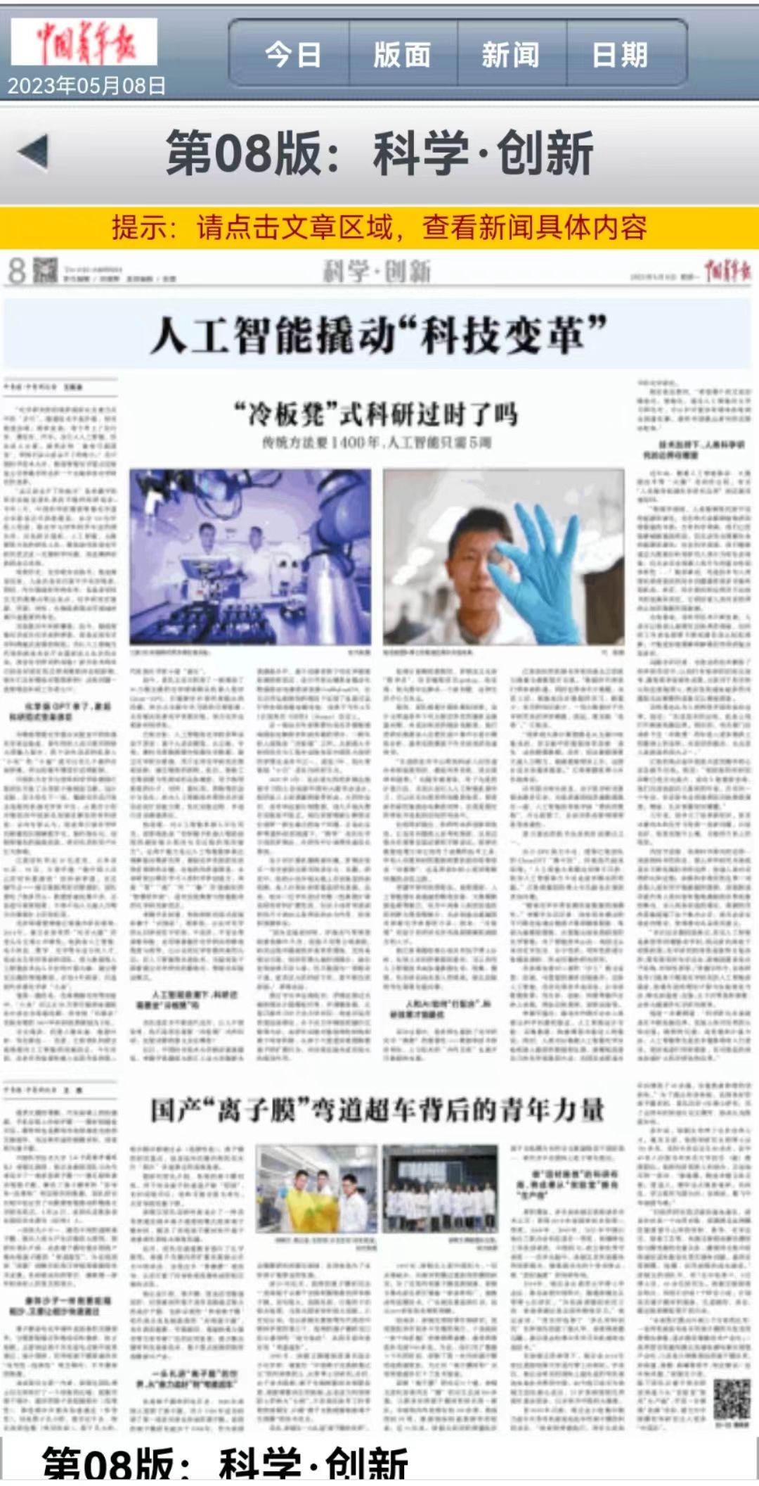 中国科大化学与材料科学学院教授江俊团队开发了全球首个集阅读文献、设计实验、自主优化于一体,覆盖化学品开发全流程的机器化学家平台,从数百万的可能组合中找到全局最优解加快材料研发。业内专家认为,该成果引领化学研究朝着知识理解数字化、操作指令化、创制智能化的趋势前进,将对化学科学产生巨大影响。