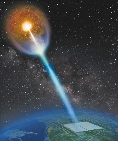 “拉索”探测伽马射线暴GRB 221009A想象图。