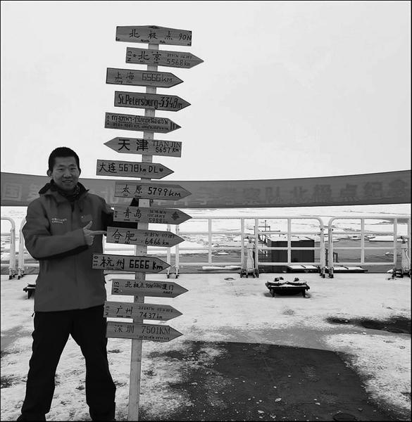 乐凡阁与队友们一起制作的标注了北极点到合肥距离的路牌。