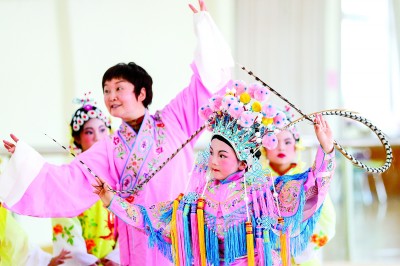 浙江省湖州市德青县钟管小学开展学戏曲活动,增进孩子对传统文化的了解和传承。光明图片/视觉中国