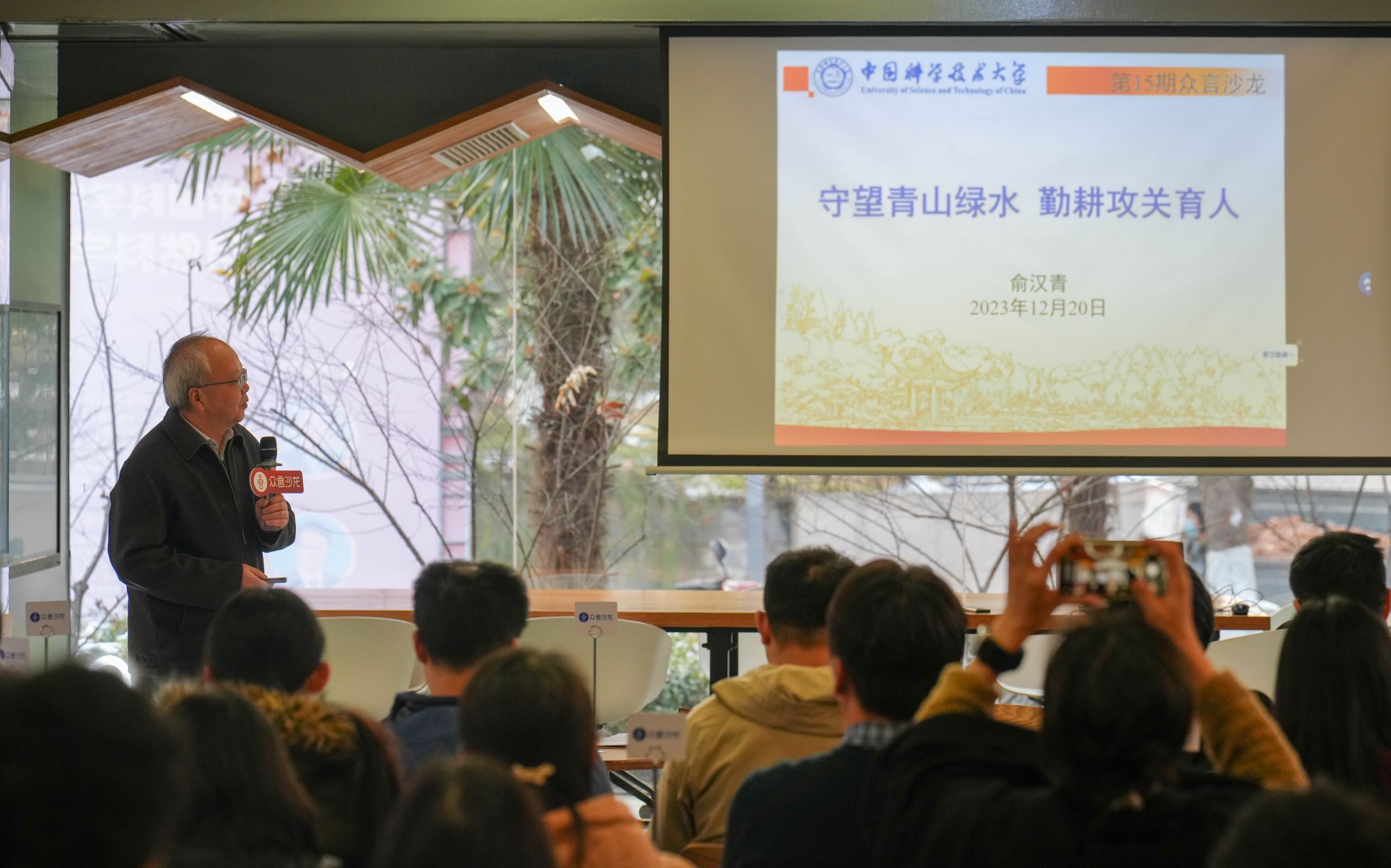满头白发,笑容可掬……在中国科学技术大学第15期“众言沙龙”活动上,俞汉青应邀作《守望青山绿水 勤耕攻关育人》主题报告。