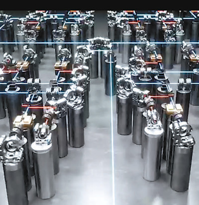 量子计算原型机“九章三号”实验装置示意图(部分)。
