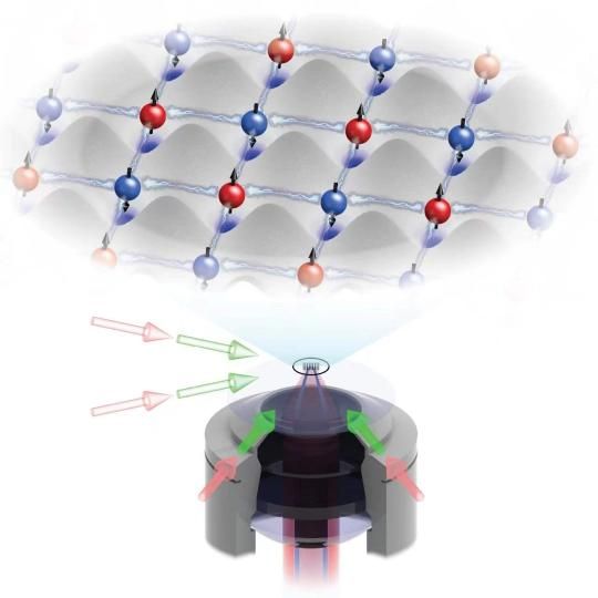 量子气体显微镜和晶格中多体纠缠态示意图。(中国科学技术大学 供图)