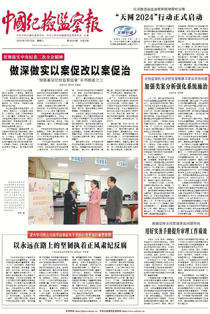【中国纪检监察报】纪检监察机关深挖发案规律及背后共性问题 加强类案分析强化系统施治