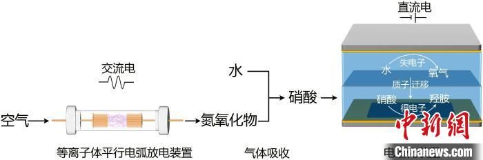 “我们通过对等离子体放电装置和气体吸收装置的结构设计,实现了仅以空气和水为原料,连续生产浓度高达7.5克每升的硝酸溶液。”曾杰说。