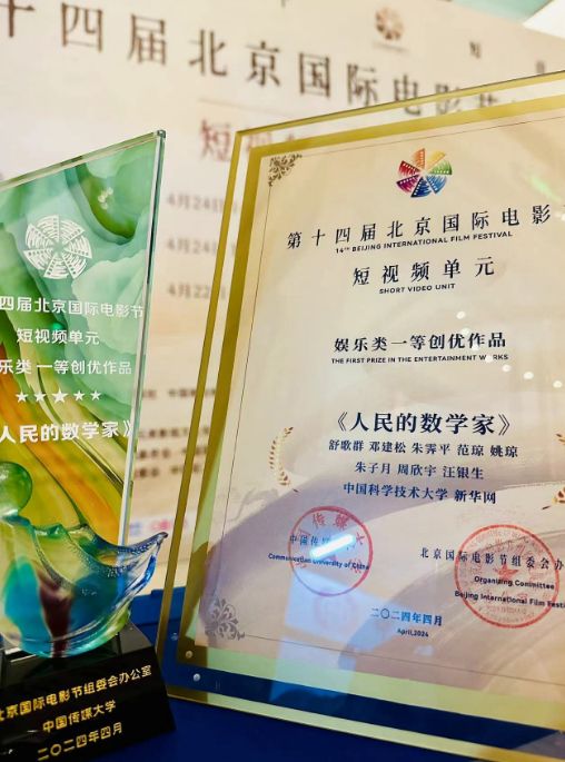 第十四届北京国际电影节短视频单元榜单揭晓,由新华网、新华社安徽分社和中国科技大学、中铁四局分别创作的微电影《人民的数学家》《无悔今生》荣获“一等创优作品”和“三等创优作品”。