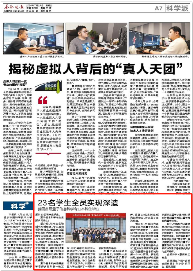 【合肥晚报】23名学生全员实现深造 我国首届量子信息科学专业本科生毕业