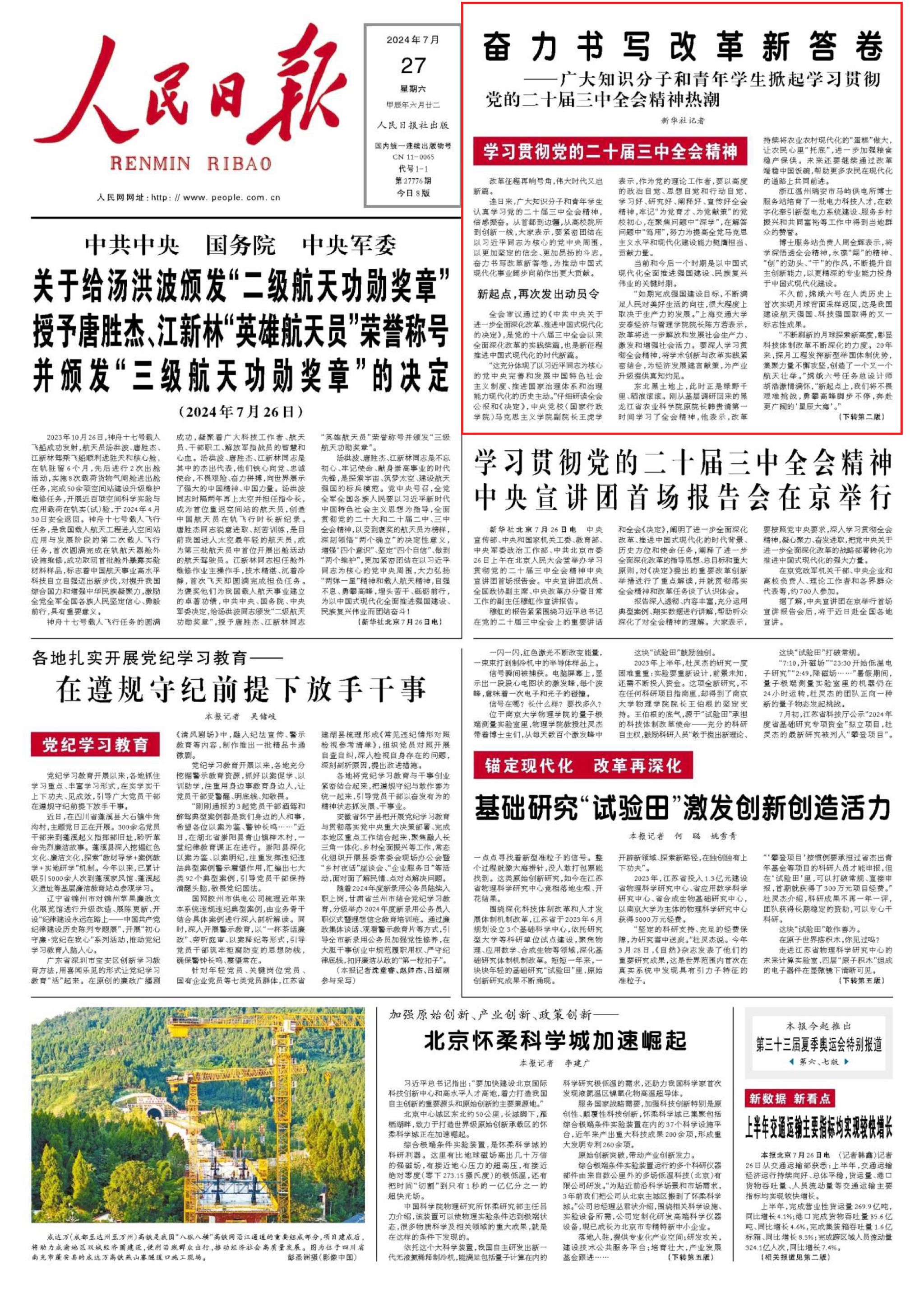 《 人民日报 》( 2024年07月27日 第 01 版)