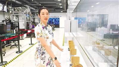 在本源量子的量子计算机组装与测试实验室,安徽省量子计算工程研究中心副主任、“本源悟空”云服务研制团队负责人赵雪娇在介绍量子计算机的重要部件。