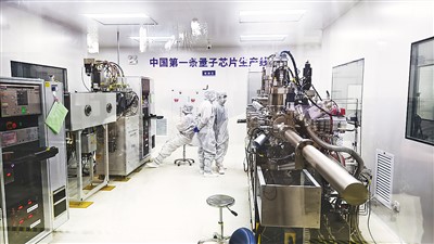 倒金字塔形的机体闪耀着科技的光芒,星罗棋布的排线有条不紊地输送着电流和信号,发光的芯片与远处墙上“造中国自主可控量子计算机”的标语遥相呼应,散热器嗡鸣声汇成的交响乐在一尘不染的实验室里回荡不息……这是近日,本报记者在安徽省合肥市本源量子计算科技(合肥)股份有限公司(以下简称本源量子)量子计算机组装与测试实验室看到的量子计算机运行场景。