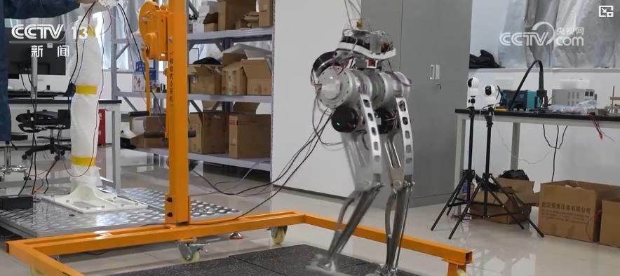 北京理工大学教授 张伟民:每个关节都配有传感器、电机减速器,还有视觉传感器,有些部位还有力传感器,都是我们自主研发生产的,最大能量去发挥它所有材料的动力,关节里边的电机和它关节整体的集成,使它具有很好的爆发力。