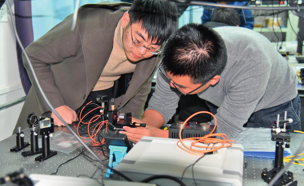 中科大少年班学院学生正在进行光纤传感显微测量实验(2024年3月19日摄) 中科大物理实验教学中心供图
