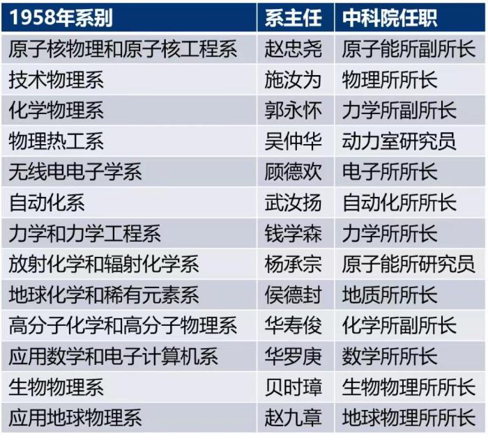 中国科大在创校初期设立了13个系41个专业,其中原子核物理和原子核工程、无线电电子学、自动化、力学和力学工程、放射化学和辐射化学等多个系科专业,直接服务于“两弹一星”事业。