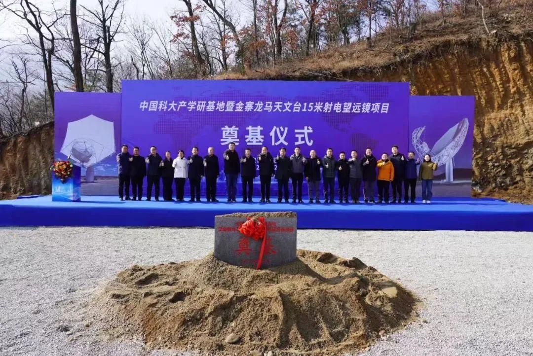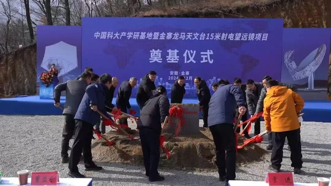 12月13日,金寨龙马天文台15米射电望远镜观测站奠基仪式在燕子河镇龙马村举行,中国科学技术大学党委副书记、校长常进,中国电科网络通信研究院副院长李奇,金寨县委副书记、县长董益乐,县委常委、政法委书记王玉宝等参加本次活动。