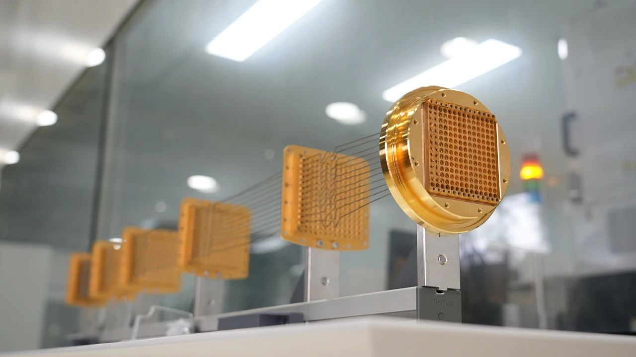 国产自主量子计算机核心部件——高密度微波互连模组。人民日报记者 徐靖 摄