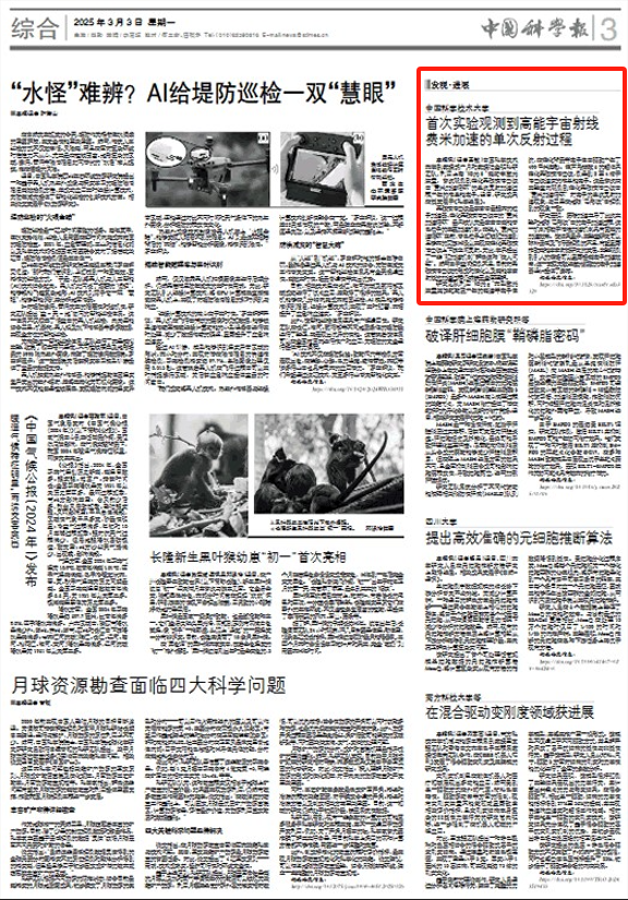 【中国科学报】中国科学技术大学首次实验观测到高能宇宙射线费米加速的单次反射过程