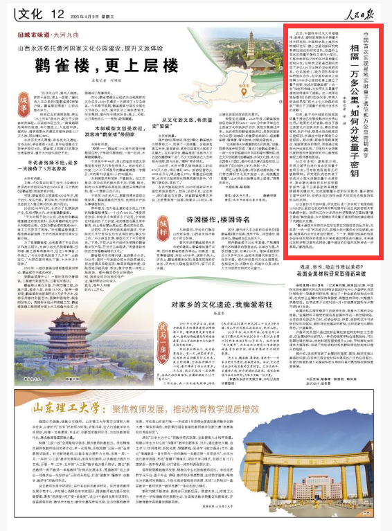 【人民日报】中国首次实现星地实时量子通信和万公里密钥共享
