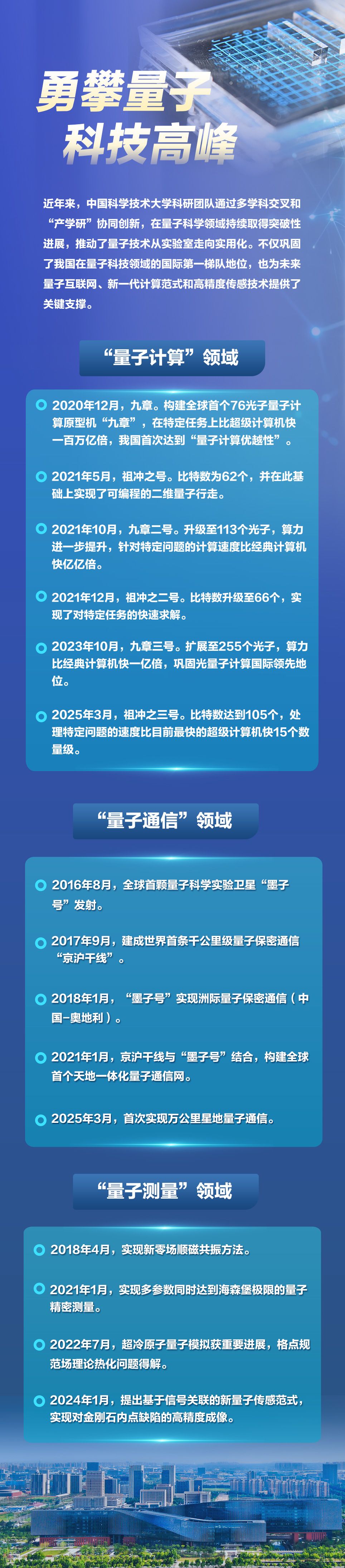 近年来,中国科学技术大学科研团队通过多学科交叉和“产学研”协同创新,在量子科学领域持续取得突破性进展。