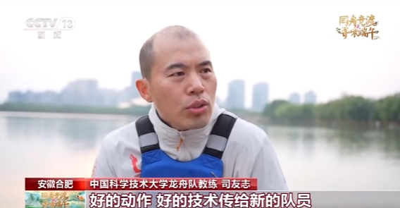 “王瑞标出差了,大家依次往前补一下。”一位前排队员向后面喊道。每年龙舟队都会有老队员离队,新生力量加入,无论新人还是老手,在科研与竞技的不同赛道上,延续勇往直前、同舟共济的龙舟精神都是大家的共识。龙舟队教练司友志说道,“老队员会把一些他比较好的经验、好的动作、好的技术传给新的队员。尽管这十几年来,队伍走了一拨又一拨的队员,但是整体上我们保持的成绩和动作还是很稳定的。”