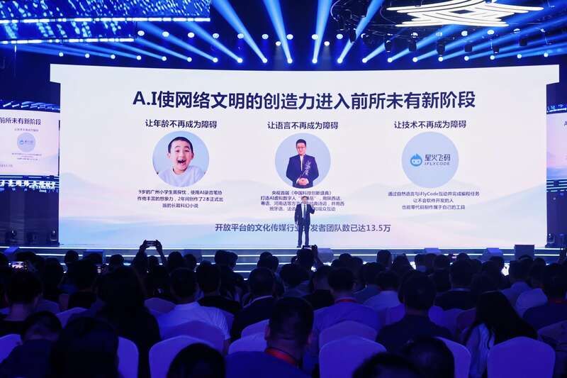 科大讯飞董事长刘庆峰在发表主题演讲。 (主办方供图)