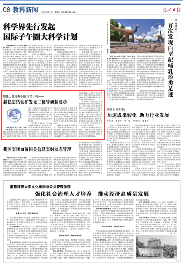 本报合肥6月12日电 从中国科学技术大学获悉,该校肖正国教授研究团队在提高钙钛矿发光二极管(LED)寿命方面取得了重要进展。他们提出了一种被称作“弱空间限域”的新方法,制备出了晶体颗粒更大、更耐高温的全无机钙钛矿薄膜,成功将LED亮度提高到116万尼特以上,使用寿命超过18万小时。日前,相关研究成果发表在国际期刊《自然》上。