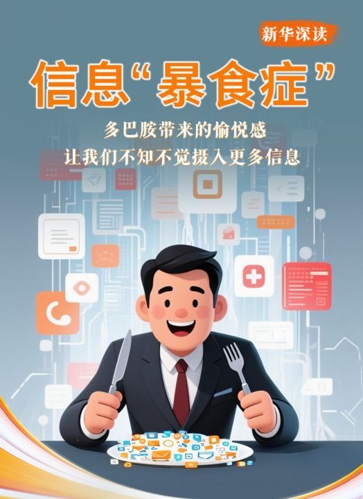 “信息‘暴食症’与大脑的奖赏机制有关。”中南大学湘雅医学院副院长、神经外科专家李学军说,大脑最主要的奖赏机制是中脑边缘多巴胺系统,主要由杏仁核、海马体和其他中脑区域组成。当人们从浏览信息中获得知识或情绪价值,大脑中的奖赏环路就会不断被激活,在多巴胺的刺激下,不知不觉就陷入愉悦性的信息“暴食症”。