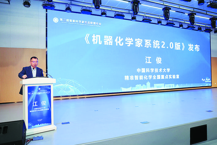 此次大会,中国科大江俊教授现场发布了《机器化学家系统2.0版》,展示智能科研平台的最新成果,引发广泛关注。